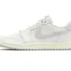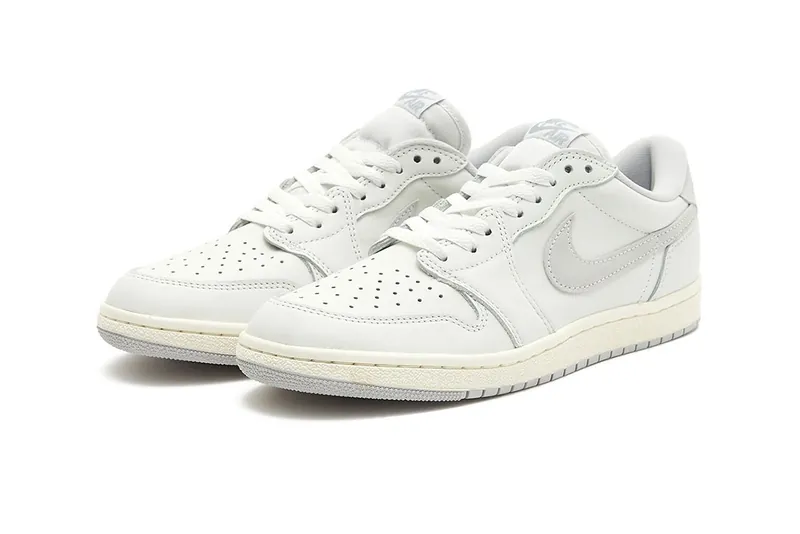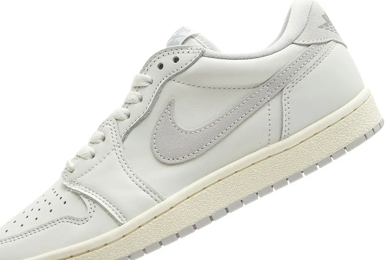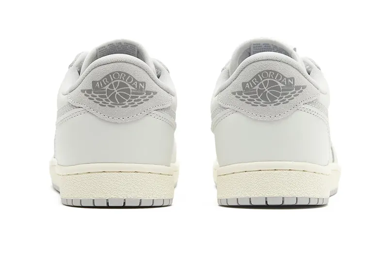 鞋面的大部分採用清新的白色皮革面板製成,而其名義上的顏色則顯示出 Swooshes、鞋跟覆蓋層和鞋舌上的 Nike 品牌標誌。傳統的 Air Jordan 翅膀標誌位於鞋跟處,並採用柔和的灰色填充物。為了營造復古的美感,JORDAM設計師為中底做了輕微泛黃的油漆,並搭配了相配的「NEUTRAL GREY」鞋面。可以將此產品與2021 年推出的Air Jordan 1 Low OG「NEUTRAL GREY 」配色進行比較,但這雙即將推出的鞋款忠實於 1985 年的形狀和外觀。