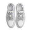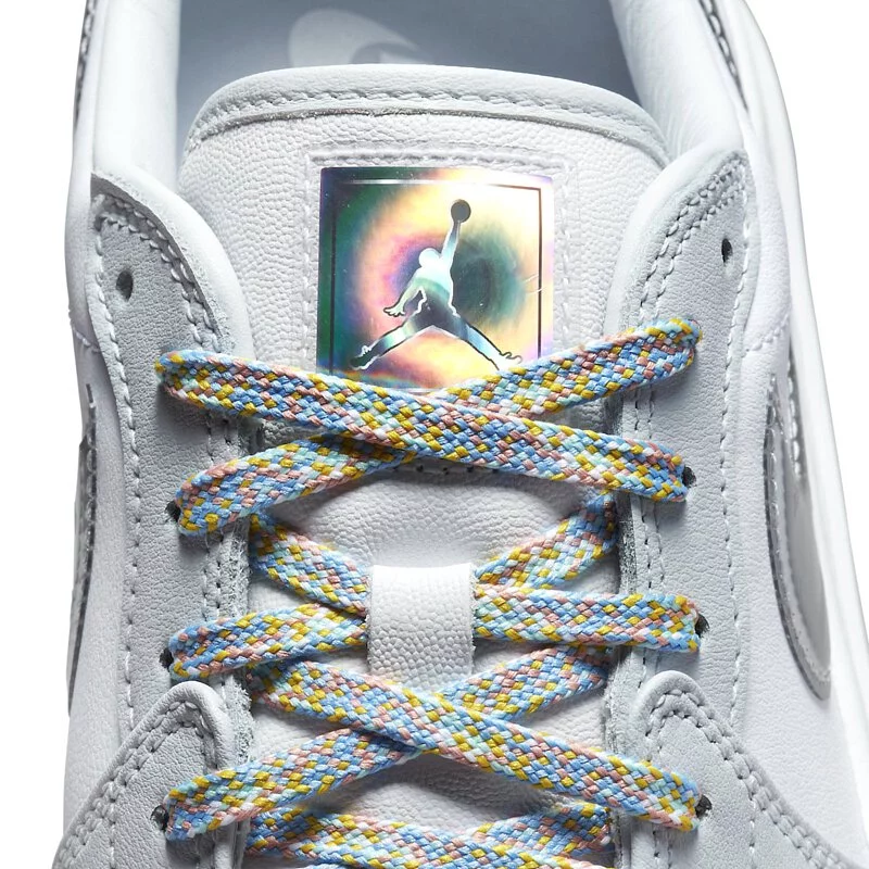 這款女子版的Air Jordan 1以白色皮革爲基調,搭配淺灰色覆蓋物。其他值得注意的細節包括多色的鞋帶,全息圖的鞋舌標簽,以及白色和灰色的平台鞋底。鞋子的亮點是撕開的Swooshes和鞋跟,露出珊瑚粉色的色調。一組額外的白色鞋帶完成了設計。