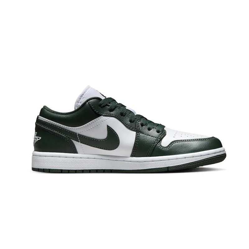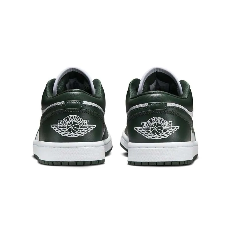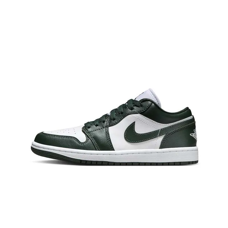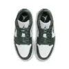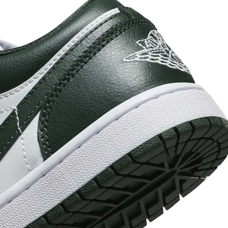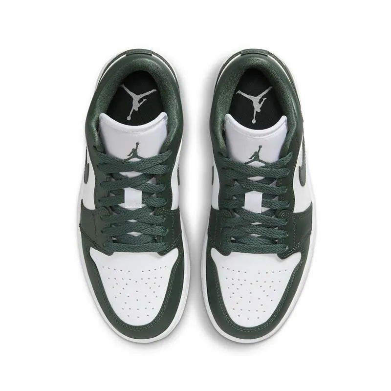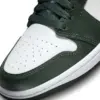 穿著簡單的白色和銀河玉色拼色的雙色衣服。這款Air Jordan 1 Low採用全皮革材質,配有網狀鞋舌和襯裡。它具有白色底座和相配的鞋舌、後翼和中底,同時具有橄欖綠覆蓋層、鞋帶、Swooshes、內襯和橡膠外底。鞋舌和鞋墊上分別飾有綠色和白色 Jumpman 標誌