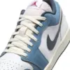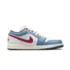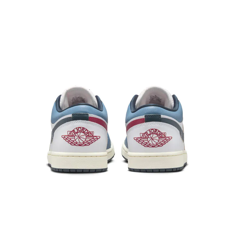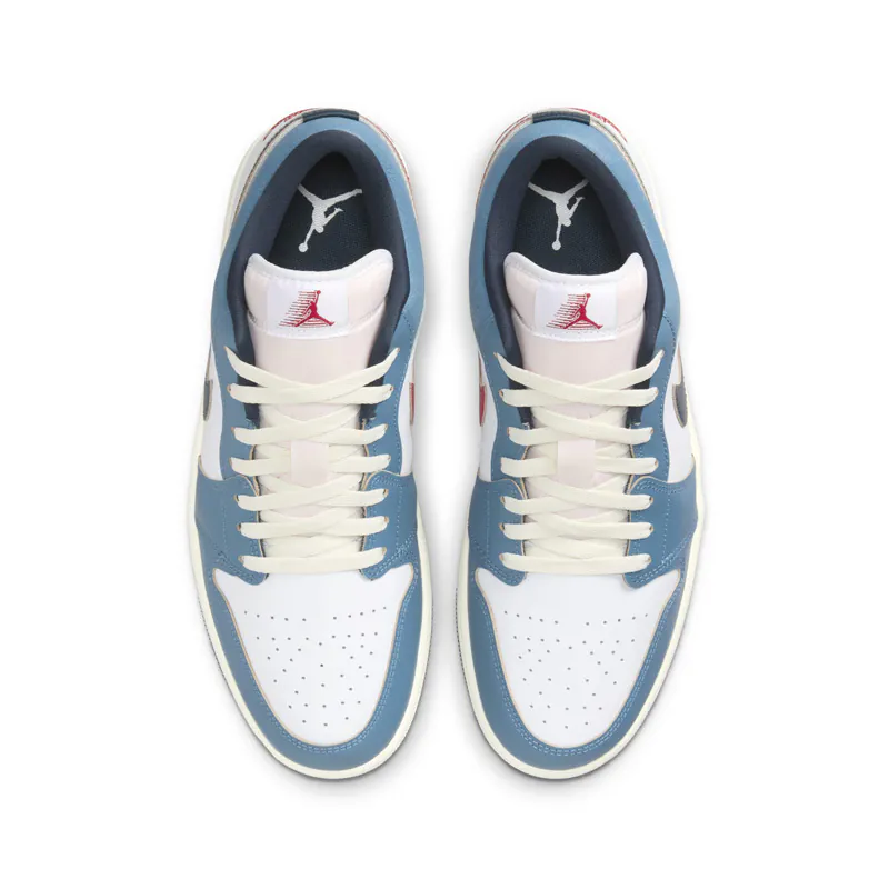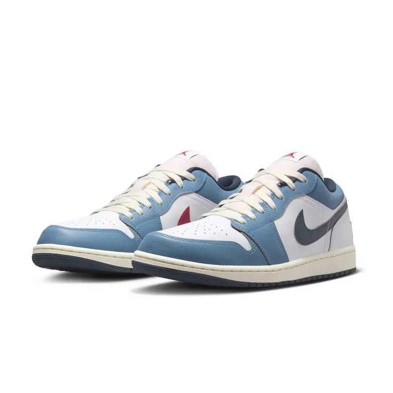 「Motion」 AJ1 Low 的非正式暱稱來自鞋舌上的紅色 Jumpman 標誌,看起來就像在空中,左側有條紋。覆蓋層和衣領採用黃昏般的「愛琴海風暴」藍色調,而 Swoosh 標誌分別在外側和內側在「Armory Navy」和紅色之間切換。當您考慮到顏色與獨特的 Jumpman 標誌的重要性時,就不難將其與構成 Mike 著名姿勢的暮光背景聯繫起來。繼續回顧 80 年代,「淡象牙色」佔據了中底和鞋帶的顏色,以增加明顯的復古感。