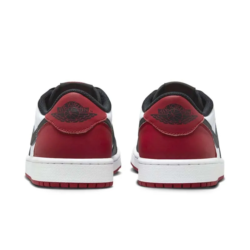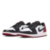 Air Jordan 1 Low OG Black Toe 本質上是Air Jordan 1 Retro High OG Black Toe的低幫變體,後者於 2016 年首次亮相。這雙鞋展示了官方的“白/黑-大學紅”配色方案,只是模仿了上述 OG 鞋款。該鞋款採用白色皮革鞋面,黑色覆蓋層和 Swooshes 點綴,而紅色則在鞋跟和橡膠外底上凸顯。最後,Nike Air 品牌鞋舌和後跟標籤上的翅膀標誌使整個風格更加完美。
