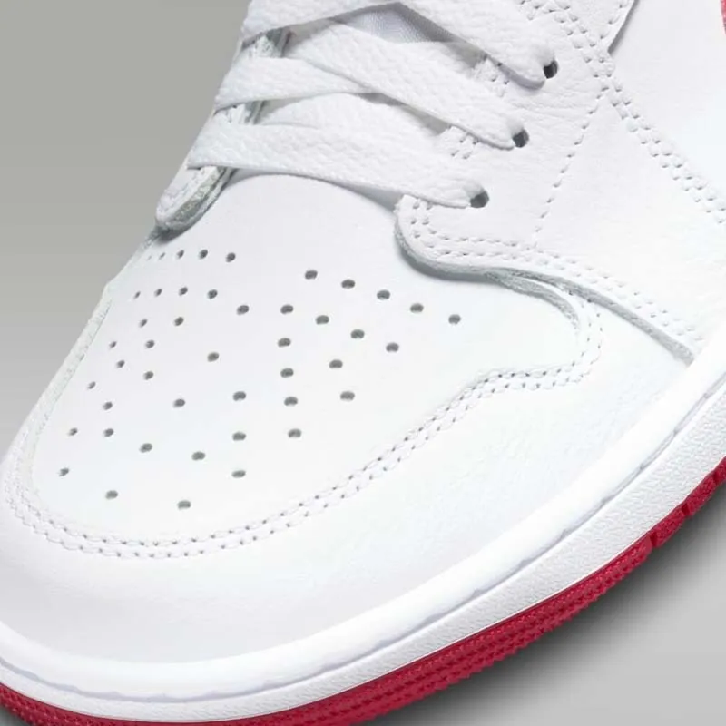 穿著白色和大學紅配色。這款Air Jordan 1 Low採用白色皮革鞋面,在 Swooshes 和後跟標籤上飾有大學紅對比色。紅色繼續出現在“Nike Air”鞋舌品牌、襯裡和橡膠外底上。白色尼龍鞋舌、鞋帶、鞋跟和中底上的 Wings 標誌完善了雙色調設計。