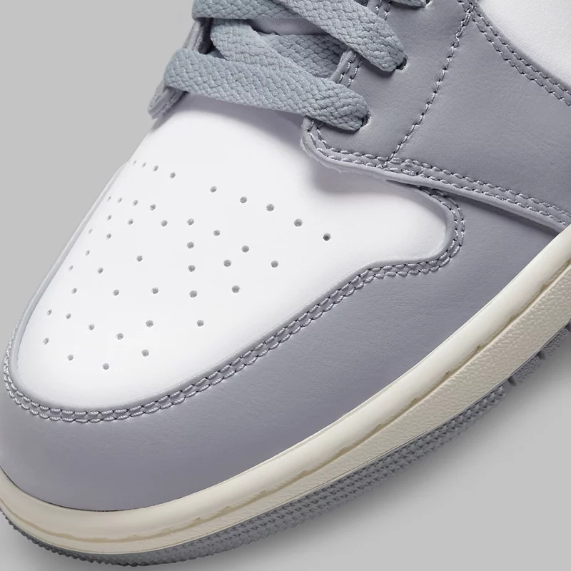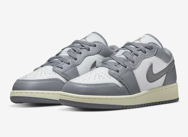 Air Jordan 1 Low 也看到了復古的處理方式。,鞋底發黃。然而,沿著底座、舌頭和品牌使用的白色相比之下是原始的,甚至沒有絲毫的銅綠。灰色覆蓋層也是如此,其光滑的皮革就像一雙全新的皮革。