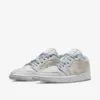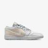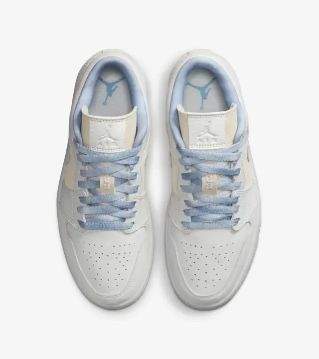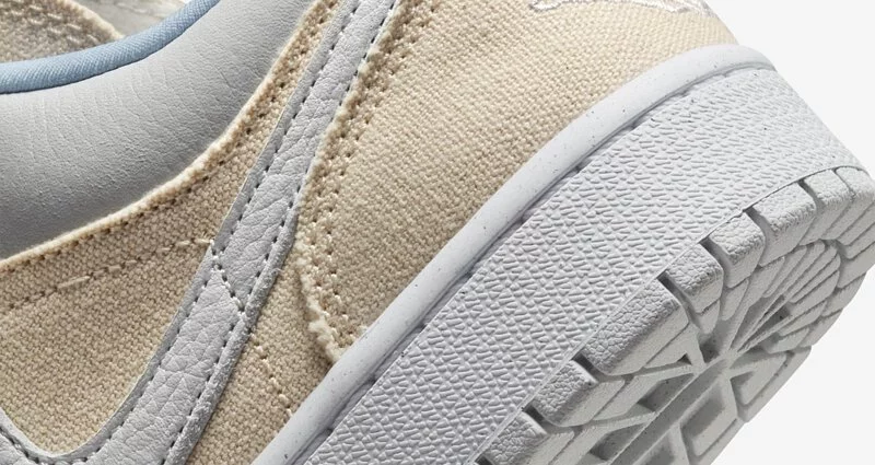 Michael Jordan 的第一款標誌性運動鞋採用了部分帆布結構,採用淺灰色、藍色和棕褐色配色,展現了生活方式。鞋舌、中足板和鞋跟覆層都採用輕質但耐用的材料,非常適合夏季穿著。讓人聯想到“風帆”的色調接管了這些組件,讓整個前掌和沿著鞋舌和衣領正下方的面板都沉浸在涼爽的灰色皮革中。各種深淺不一的藍色通過鞋帶和衣領襯裡混搭,為低幫 Jordan 1 的非原創配色錦上添花。