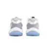 配色方案平衡了“白色”、“大學藍”和“水泥灰”,為 Air Jordan 11 Low提供了一種熟悉的方法。它的網眼鞋面偏愛白色,包括其標誌性的繫帶系統和隨附的鞋帶。它的名義顏色與裝飾和標準漆皮擋泥板相得益彰,而白色中底與冰冷的半透明外底相連。完成外觀,標準品牌包括藍色和白色,鞋跟和鞋舌處有藍色 Jumpman 標誌,旁邊是白色的 Air Jordan 11 。