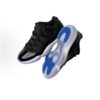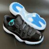 Air Jordan 11 Retro Low 空間大灌籃 低筒 AJ11 11代 aj11 乔11 低邦 大灌籃 積臣11 篮球鞋 系列 鞋身採用黑色尼龍網眼鞋面,搭配黑色漆皮材質覆蓋層,展現不錯的整體性;後跟依舊使用經典的「二三」並且使用白色進行點綴;後跟Jumpman Logo則是使用藍色刺繡呈現,鞋帶孔輔以黑色繡標上點綴藍色迷你Jumpman Logo,營造奢華的氛圍,最後以白色中底和淺藍水晶外底和白色Jumpman Logo完善整體。